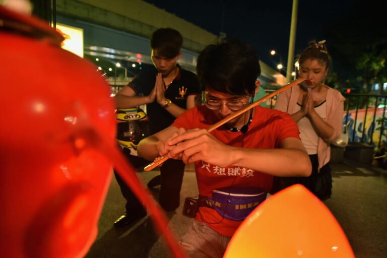 其二:環境聲響時而會干擾演出情緒堆疊,也會分散觀眾的注意力。當時我作為燈光設計,便和導演討論將夜市常見的大型鎢絲燈泡納入整體視覺考量,輔以四周天然的通明招牌作為面光補強,讓整個表演區域更加凝聚。
