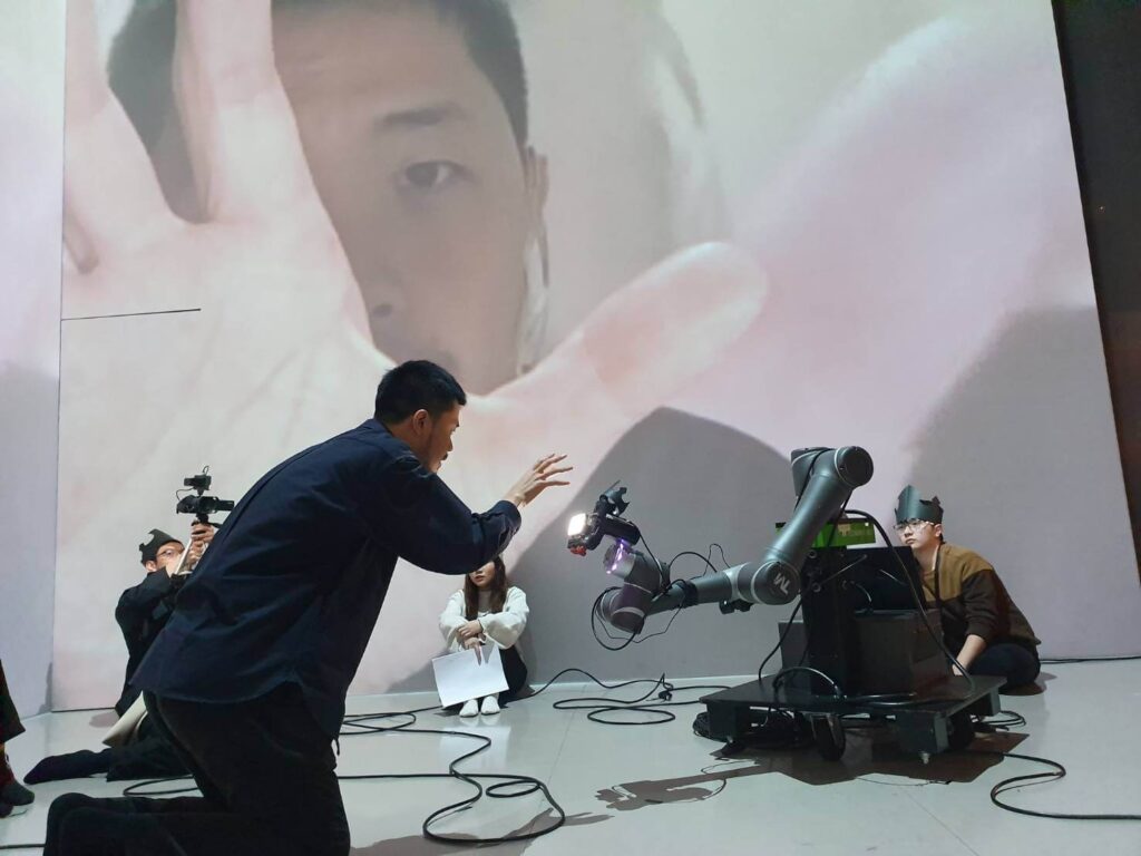 拿到計畫雖然高興,但要如何執行卻非常挑戰。技術一定做得到,但在戲劇系,只有影像設計的王正源老師懂得部份技術,要找到其他願意加入、一起努力的專家並不容易。當然最簡單的方式是拿著補助款請廠商處理技術的部份,但第一年還有時間,我比較想跟學生一起試試看。計畫第一年,我跟正源老師合授「科技藝術劇場專題實作」課程,帶著來自不同系所、有興趣的學生一起做,期望培育跨域人才。課程讓學生以莎士比亞的《哈姆雷特》為文本、以異地共演為技術框架,一起實驗探索不同科技運用的可能,很多東西都是從零開始,包括機器人、機器手臂、5G技術,這些想要在演出中嘗試的關鍵元素,對大家都是陌生的領域。感覺像在黑暗中帶領著一群人摸索前進,雖然相信盡頭有光,但帶領眾人在未知中摸索,壓力也是蠻大的,還好一群助教們各司其職,都很給力。
