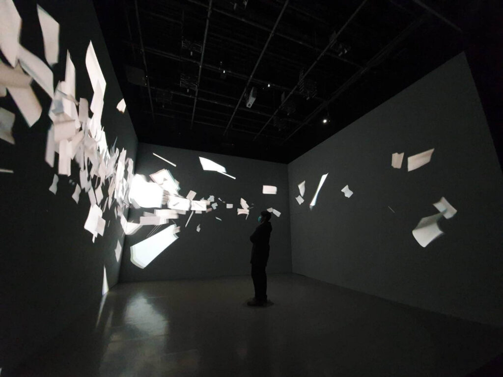 後來捐贈案雖然不了了之,但是不久得知教育部有前瞻顯示計畫的徵件,一切因緣俱足,也很幸運爭取到計畫,得以建置沉浸式投影的場域,並且陸續安排相關課程。另外,在空間施作階段,我就開始規劃定目劇的製作,如此來參訪的人們不會只看到一個空殼,而能藉由好的作品啟發更多想像。類似的場地在外面租借一天動輒上萬元,因此我們可以在這個小小的實驗劇場盡情進行各種展演實驗,實是奢侈的幸福。