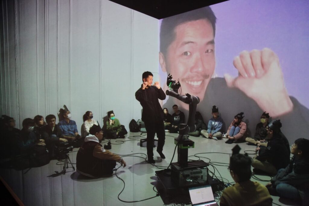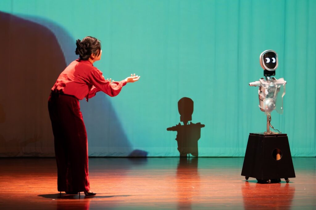 事實上,在劇場中,燈光、音樂等元素也可以被視為科技的一部分。因此,劇場一直以來都在實踐某種形式的科技。然而,劇場的手工感仍然十分濃厚。如何將兩者完美結合,讓「科技感」與「手工感」相輔相成,是劇場導演本來就必須面臨的課題。在這次的製作當中,即便引入了異地共演、機器人跟機器手臂等科技元素,我們還是試圖讓科技的呈現保留了一定的「手工感」。我認為,這樣的設計有助於維持劇場的人性與溫度,同時確保是由科技來配合戲,而非由戲去配合科技。