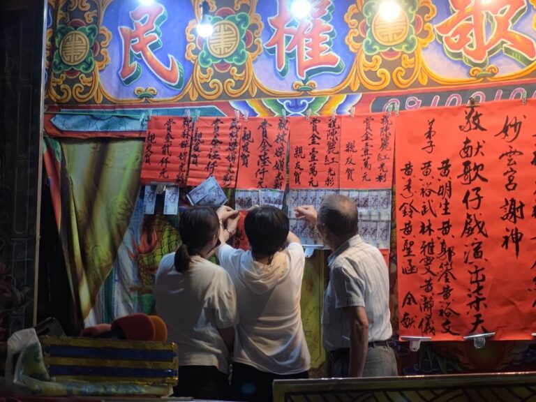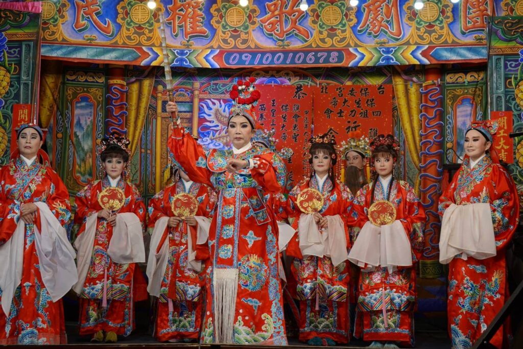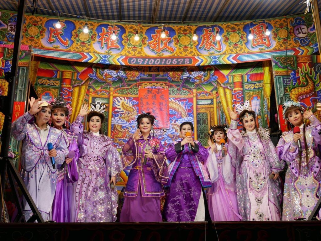 「良時大吉日,吉日大良時1。農曆月者八月初八日,良時大吉日,恭祝著咱中和鎮福宮福德正神聖誕千秋……」,宛如一個方盒的戲臺與小小的土地公廟隔著馬路遙遙相對,一邊是爐煙裊裊另一邊鑼鼓喧天。搭建在廟口的空地,一個小小的戲臺,臺上的演員畫著豔麗的妝容,伴隨著鑼鼓及音樂,臺下擺放著幾張鮮紅的塑膠紅板凳,有人早早到來等待著開演,也有些人因為好奇短暫駐足。外臺戲、野臺戲,或者說民戲,也就是民間請戲,一直都是臺灣歌仔戲重要的演戲方式之一,「做活戲」的演戲方式大程度的保存了歌仔戲鮮活多元有彈性的特質,展現演員的好腹內(pak-lāi),也讓我們看見演員們一如歌仔戲這個劇種所擁有的韌性。