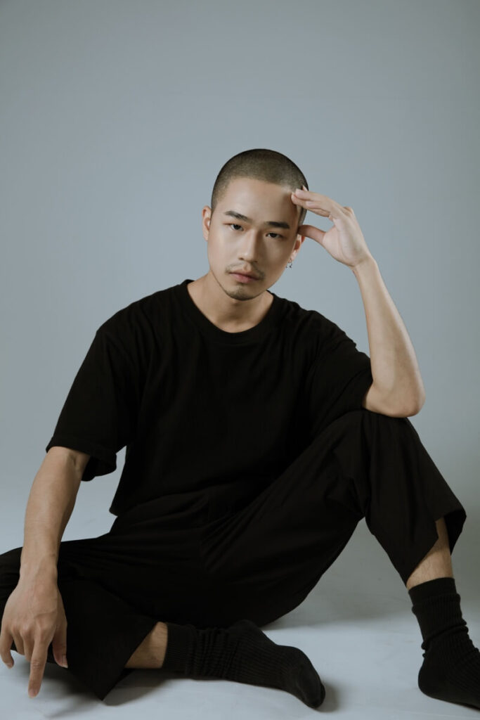 2023年他入選阮劇團DQ創作計畫,在嘉義駐地創作並發表了作品《半閹娘仔》。這個名稱意指男體女態者,出於計畫共同發展文本的表演者沈建緯的成長故事,創作過程兩人互相分享與挖掘各自來自於性別的生命經驗與疼痛,並將這些刺痛的記憶轉化成以變裝烏托邦為題的派對。視覺方面,他運用了許多台灣在地元素與生活中的日常物件,透過現成物的拼接與拆解,重啟大眾對於物件美學的視覺想像,以及其符號意義的重新詮釋。近年這兩件作品,他皆將成長的痛感轉化為變裝創作的材料,並在過程中逐步修復關係、與自我和解,因而得以成為今日更加理想的自己。