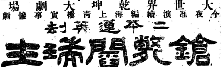 1920年11月底的上海,正是深秋的時節。夜裡寒意漸濃,但繁華的上海街景稍稍驅散了秋冬的肅殺之氣。這天夜裡,大世界乾坤大劇場的水牌上大大地寫著:「今夜大軸──二本蓮英刦 鎗斃閻瑞生」。